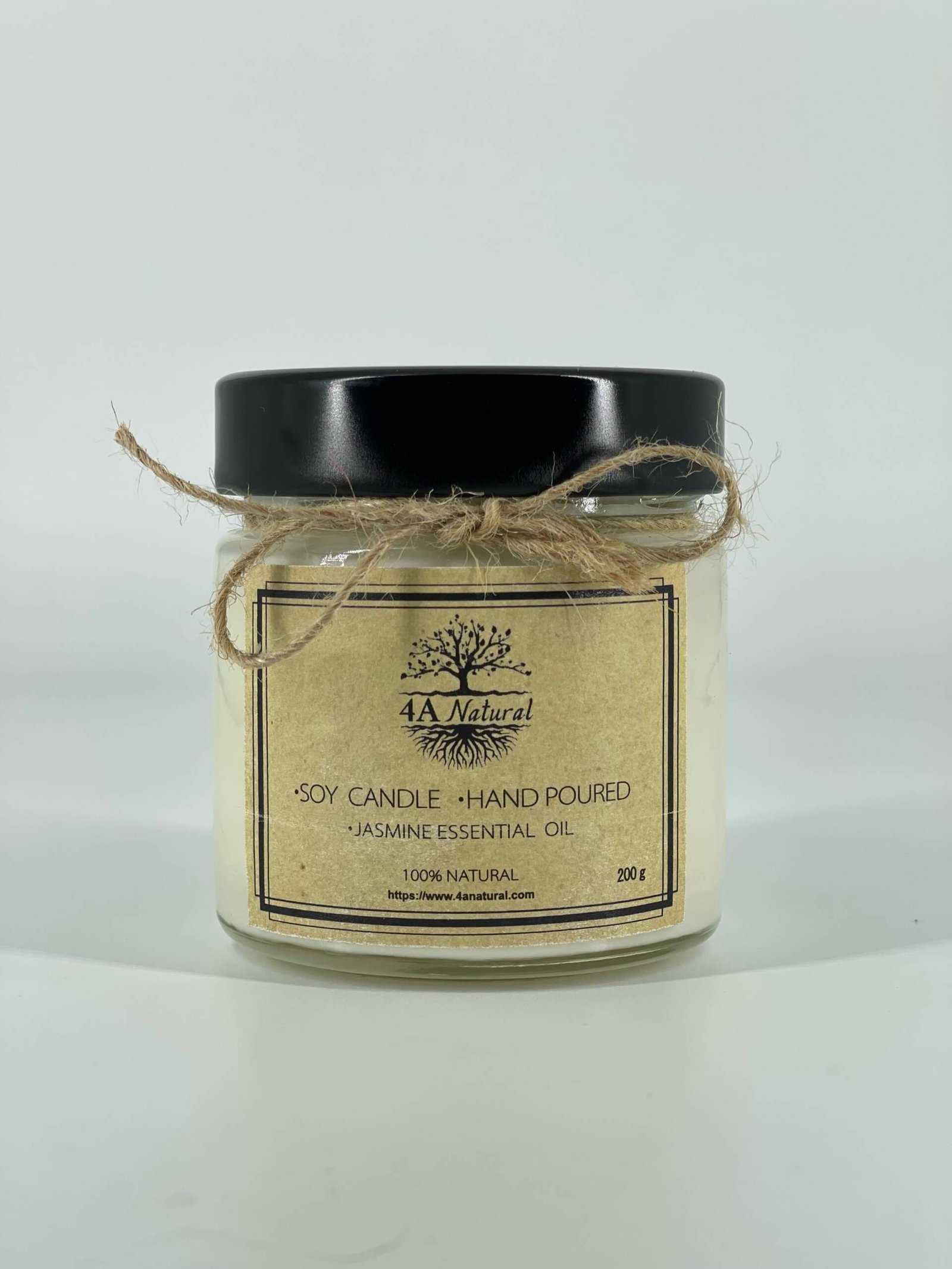 100% натурален соев восък , етерично масло жасмин, памучен фитил.