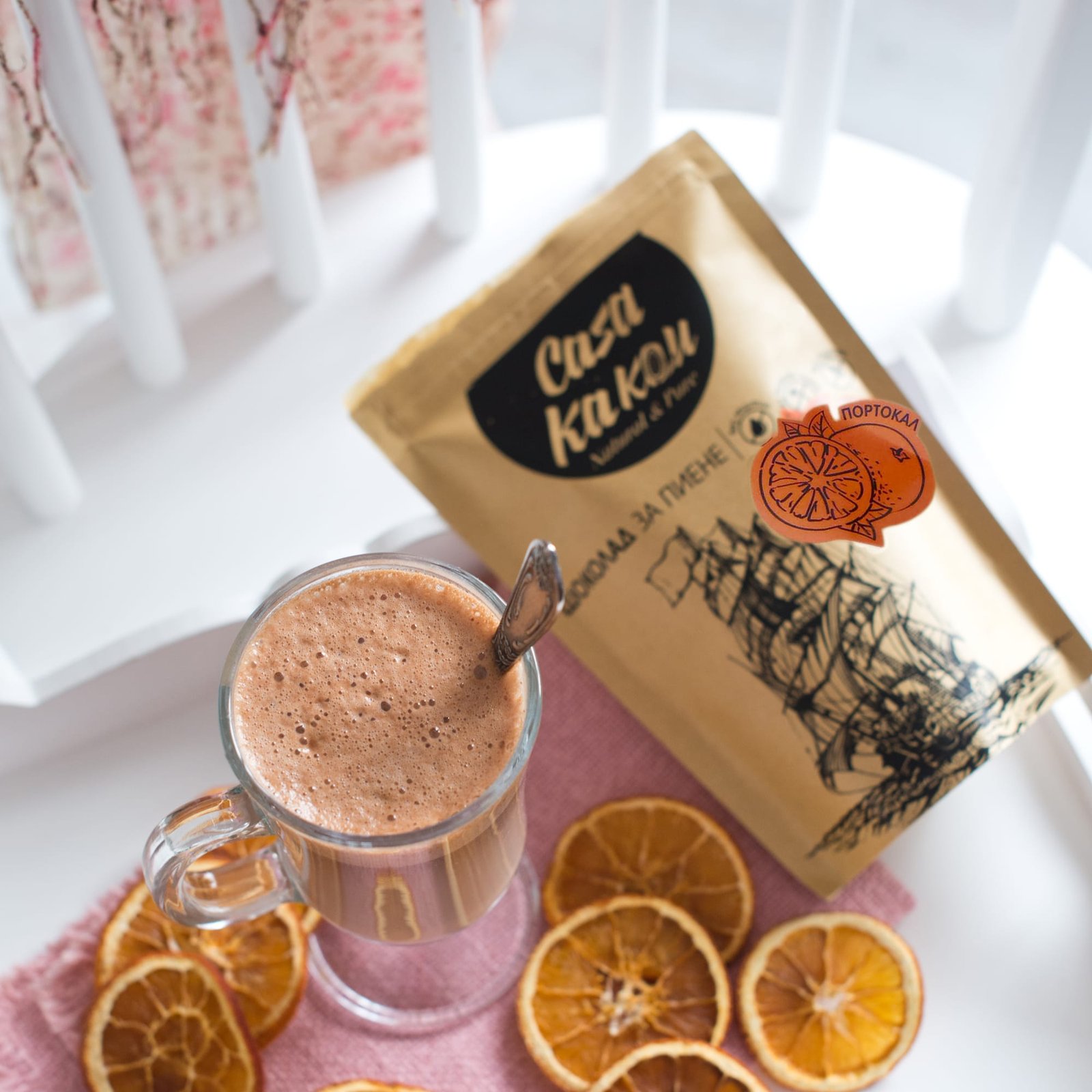 Съставки: какаови зърна, кафява нерафинирана тръстикова захар, масло от портокал